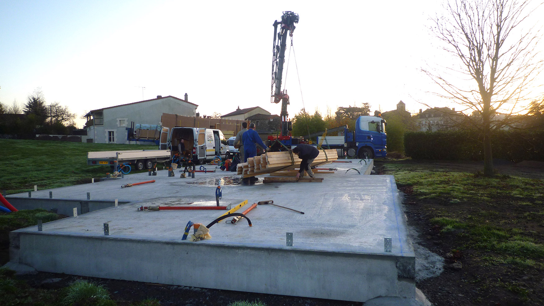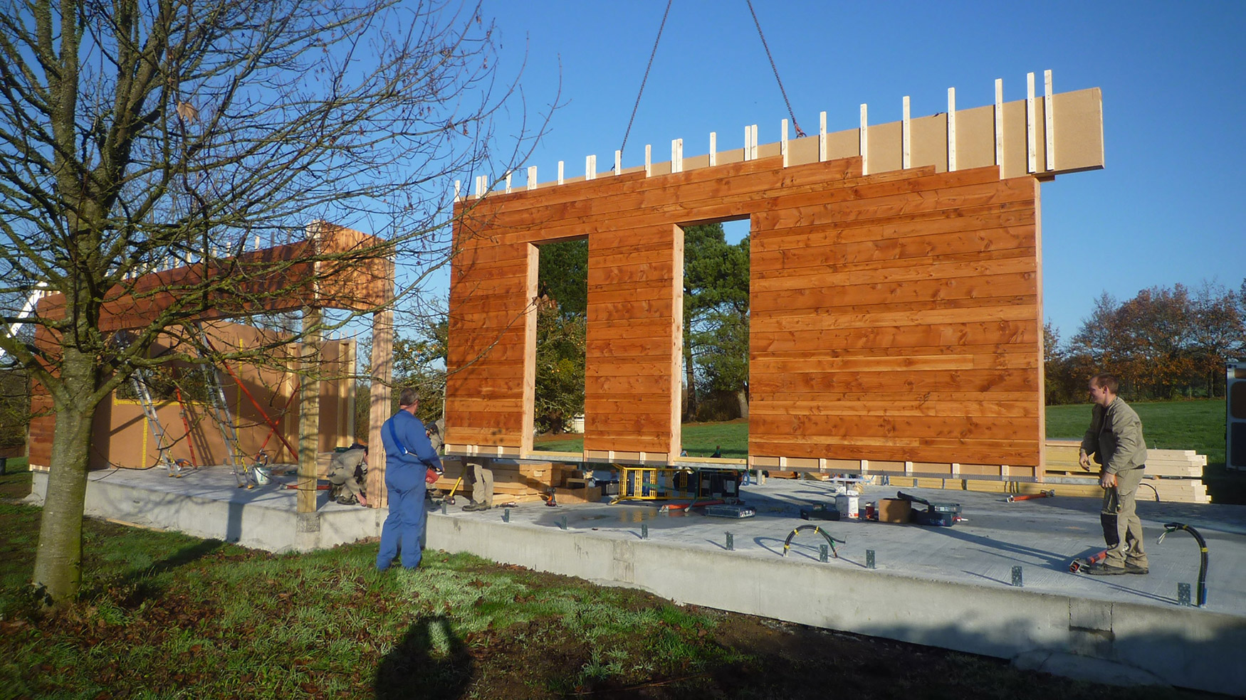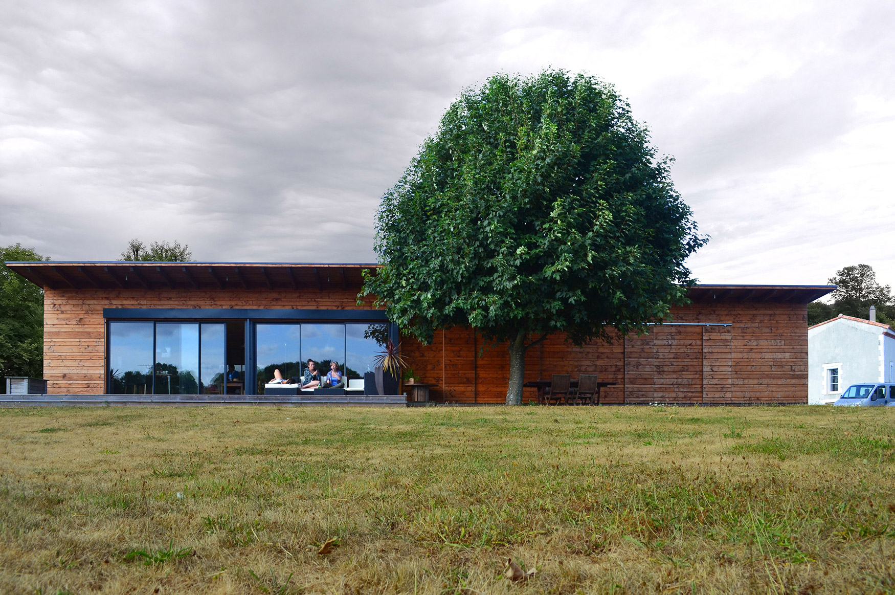 Case de l'Oncle Tom was designed for a family of five that desires a healthy and sustainable way of life. It is situated on a sloping plot in a small village on the west coast of France. The footprint has a north-south orientation for optimum solar heat gain.