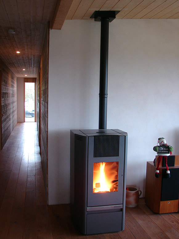 Case de l'Oncle Tom was designed according to the Passive House standard (low energy house). A Passive House is a home with a permanently good indoor climate, without using a traditional heating or cooling system. And that in both winter and summer. The "lungs” of the house are a balanced ventilation system with heat recovery that blows in freshly filtered outside air and blows out polluted warm air. The warmth of the outgoing air is thereby re-used as preheating for the incoming air. For the main heating system, a central heating pellet stove is used in combination with a buffer tank, for higher generation efficiency of the tap water (showers).